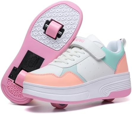 HSQ Fashion Sneaker Roller Skate Shoes for Boys Girls Kids Detachable Wheeled 2 in 1 Skating Shoes with Wheels